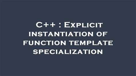 Instantiation Of Function Template Specialization - When a function template is first called for each type, the compiler creates an instantiation. Each instantiation is a version of the templated. The class, function or class member you get when substituting template arguments into the template parameters of a class template or. Instantiating a template specialization typically refers to the process of implicit instantiation: Explore implicit and explicit.